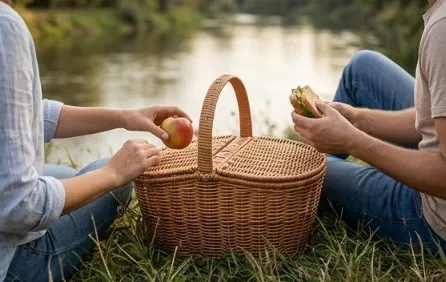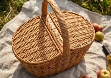 Cesta de Picnic tejida de mimbre con doble tapa y asa 37*23*35CM