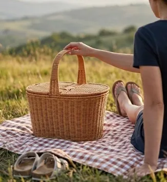 Cesta tejida de mimbre con asa y tapa 47*30*39CM
