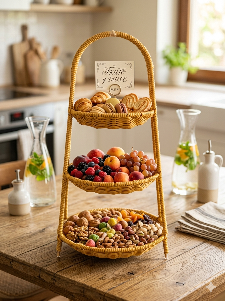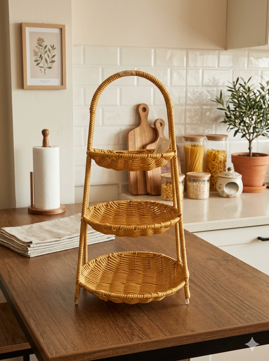 Cesta tejida de mimbre de 3 niveles 22*45CM