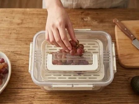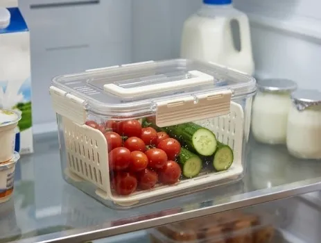 Contenedor acrílico de alimentos con tapa , asa y bandeja escurridora 23.8*17*14.2CM