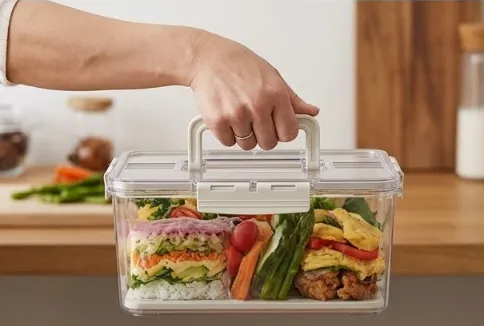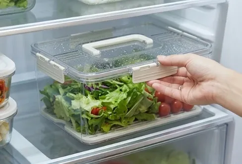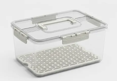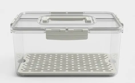 Contenedor acrílico de alimentos con tapa , asa y bandeja escurridora 31*23.8*14.2CM