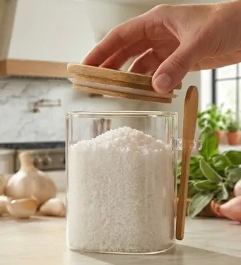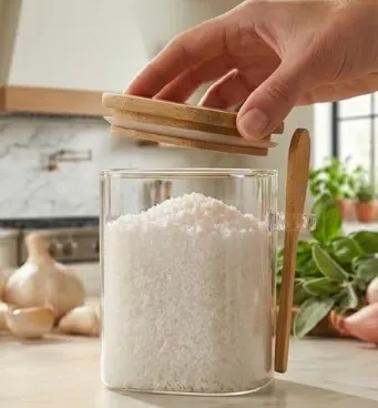frasco de almacenamiento cuadrado con tapa y una cuchara de bambú 10*12CM