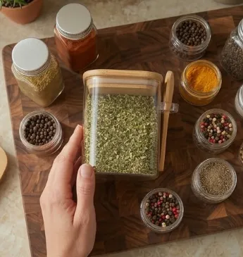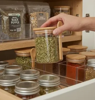 frasco de almacenamiento cuadrado con tapa y una cuchara de bambú 10*18CM