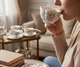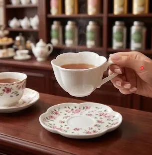 set de 4 juegos de taza con plato de cerámica con forma de flor 9.5*2.5*7*2*14.5CM
