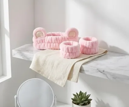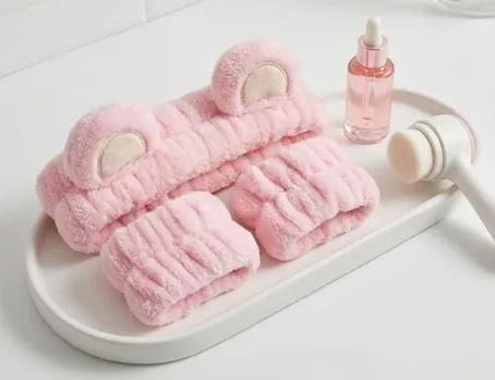 set de vincha elástica y muñequeras para skincare con un diseño de orejas de oso redondas