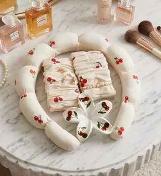 vincha acolchada de cereza y un set de accesorios 3 colores